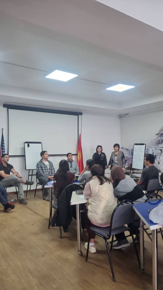 30.09.2025 Чет тилдери кафедрасынын окутуучусу Токтосунова А.С жана КИЯ-22 тайпасынын студенттери менен биргеликте АКШ элчилигинин өкүлдөрү Emily Weismiller,Miguel Marino, Kaveh Amirfasy, John Derhak менен «Америкалык Бурчта»жолугушуу өткөрүштү.Бул жолугушуунун алкагында «Менин хоббим.Эмне үчүн англис тилин үйрөнгүм келет?» деген темада дүйнөлүк тил болуп эсептелинген англис тилинде эркин баарлашуу жана тайпаларга бөлүнүп ,ар түрдүү оюндар ойнотулуп жагымдуу маанайда өттү.Соңунда жеңүүчүлөргө белектер берилип, достук иретинде сүрөткө түшүү менен аяктады.