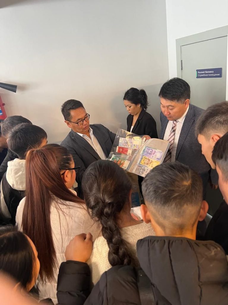Касым Тыныстанов атындагы ЫМУнун колледжинин Социалдык-экономикалык дисциплиналар ПЦКсынын окутуучусу Д.Т.Мусуралиеванын жетекчилиги астында 2025-жылдын 28-октябрында БД-21, БД-22, БиЭ-22, БиЭ-21 жана КНН-21 тайпаларынын студенттери Элдик Банкка барып келишти.