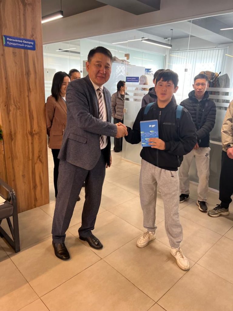 Банк кызматкерлери студенттер үчүн викторина уюштурушуп, финансылык темадагы суроолорго жооп берген студенттерди белектер менен сыйлашты.