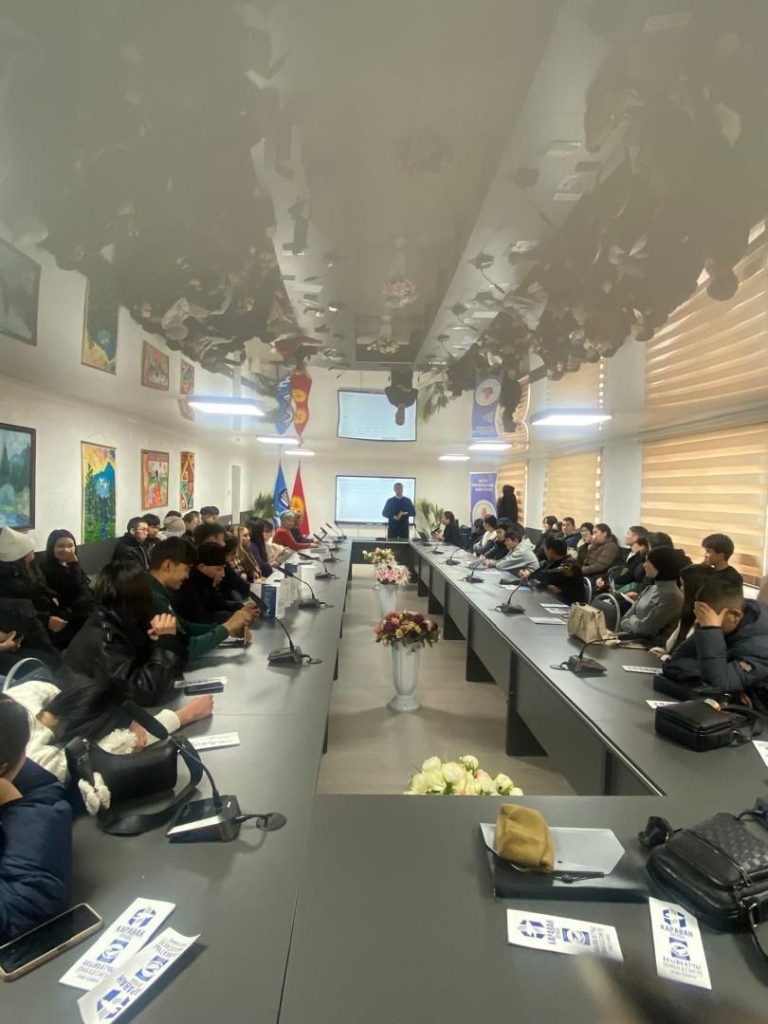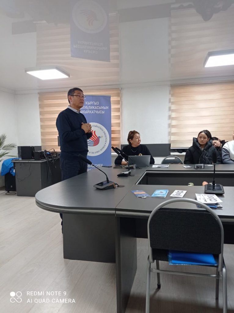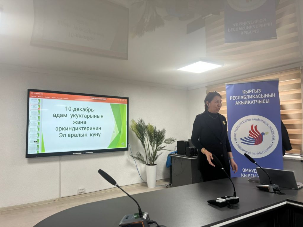 2025-жылдын 10декабрь куну ЫМУнун колледжинин Социалдык-экономикалык дисциплиналар ПЦКасы “Адам укуктарынын жана эркиндиктеринин Эл аралык кунунө” карата студенттер менен семинар өткөрдү. Семинарга КР Акыйкатчысынын (Омбудсменинин) Ысык-Көл облусундагы өкүлчүлүгүнөн Бердибаев Р.Ж. жана Шаршеева А. катышты. Студенттерге кириш бөлүгүндө адам укуктарынын келип чыгышы, кабыл алынышы, мамлекеттерде колдонулушу тууралуу кыскача маалымат менен окутуучу Ч.К.Сооронбаева тааныштырып өттү. Акыйкатчынын өкүлү өз сөзүндө адам укуктарынын бир нече критерийлери жана студенттердин окууга, эмгекке болгон укуктары жөнүндө толук түшүндүрмө берди. Айрым студенттер укук боюнча кызыккан суроолорун берип жооп алышты. Ар бир адамдын укугу жана эркиндиги ыйык жана кол тийгис экендигин дагы бир жолу айгинелеген семинар ийгиликтүү аяктады.
