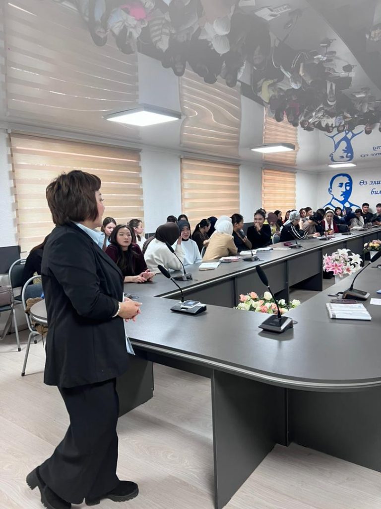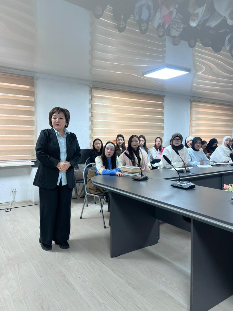 Арабаев атындагы Кыргыз мамлекеттик университети нин филология факультетинин деканы, к.п.н., доцент Сегизбаева Назгуль Капаровна “Башталгыч класстарда окутуу” жана “Чет тили” адистиктеринин студенттерине «Роль свободного времени в жизни студента колледжа» аттуу темада мазмундуу жана кызыктуу конок лекция өттү.