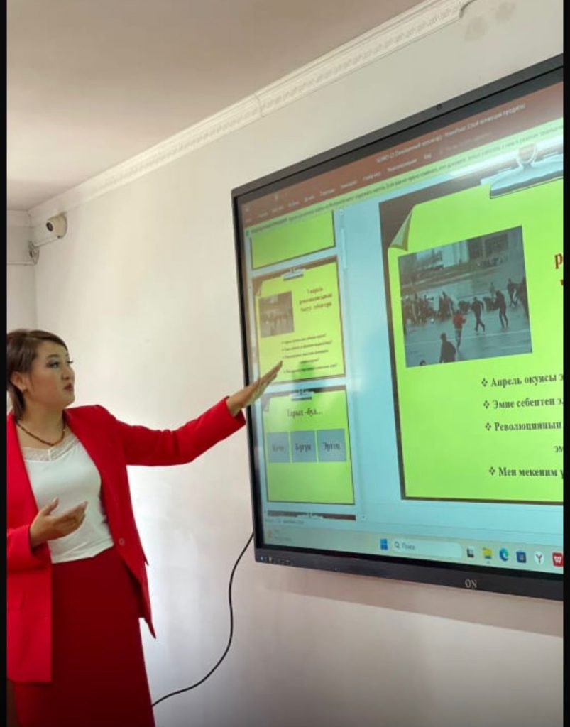 Ички мобилдүүлүк программасынын алкагында тарых мугалими Бабаканова Жылдыз Жусуповна «7-апрель – тарых жана бүгүнкү күн» аттуу темада конок лекциясын өттү. Лекциянын жүрүшүндө 7-апрель окуясынын тарыхый мааниси, анын себептери жана бүгүнкү күндөгү орду тууралуу кеңири маалымат берилип, студенттер менен кызыктуу талкуу уюштурулду.
